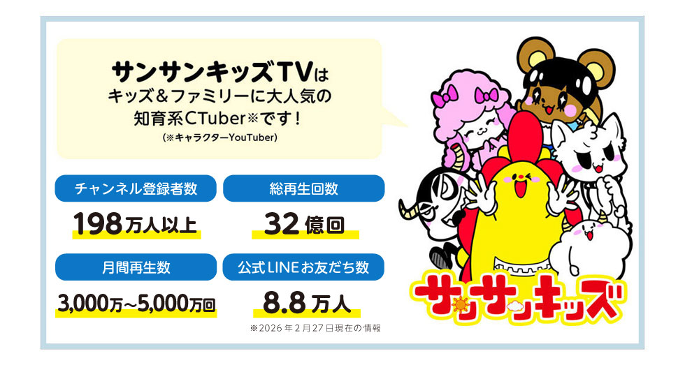 親子向けYouTubeチャンネル“サンサンキッズTV”